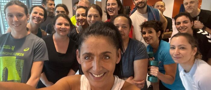 Cette photo reflète l’esprit de notre section fitness : un groupe soudé, énergique et motivé, où les adhérents partagent l’effort, la bonne humeur et le plaisir de s’entraîner ensemble.
