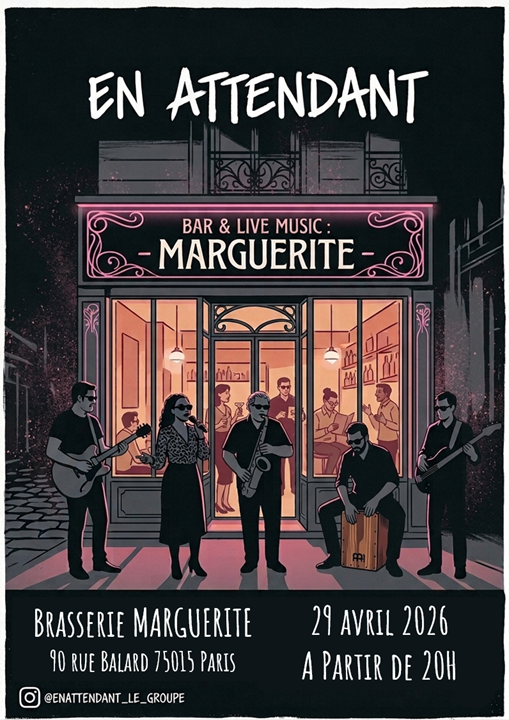 Le groupe « En attendant » vous donne rendez-vous le 29 avril à partir de 20h00 au restaurant le Marguerite, Paris 15ᵉ, pour un nouveau concert vibrant en salle restaurant.