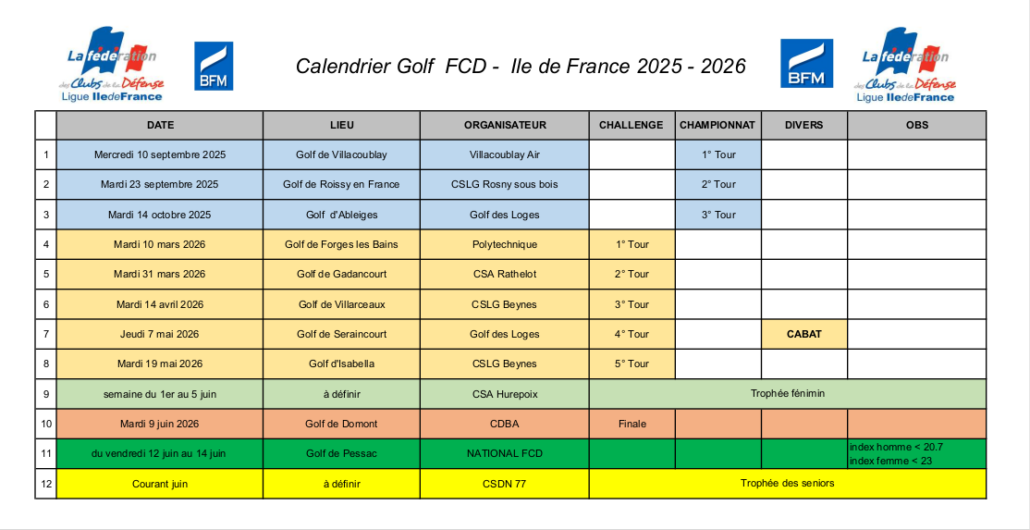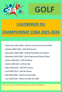 Voir calendrier des compétitions (Descriptif ou autres documents)Vente Green fees tous sites , Golf Villacoublay